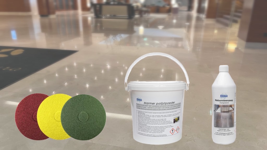 Dit is een snel werkend polijstpoeder voor marmer dat met behulp van water en een lage toeren machine in enkele minuten niet alleen een hoogglans bereikt maar de steen versterkt, waardoor het een langere levensduur behoudt. Je kunt dit product gebruiken met een éénschijfsmachine of een schrob-(zuig)machine.